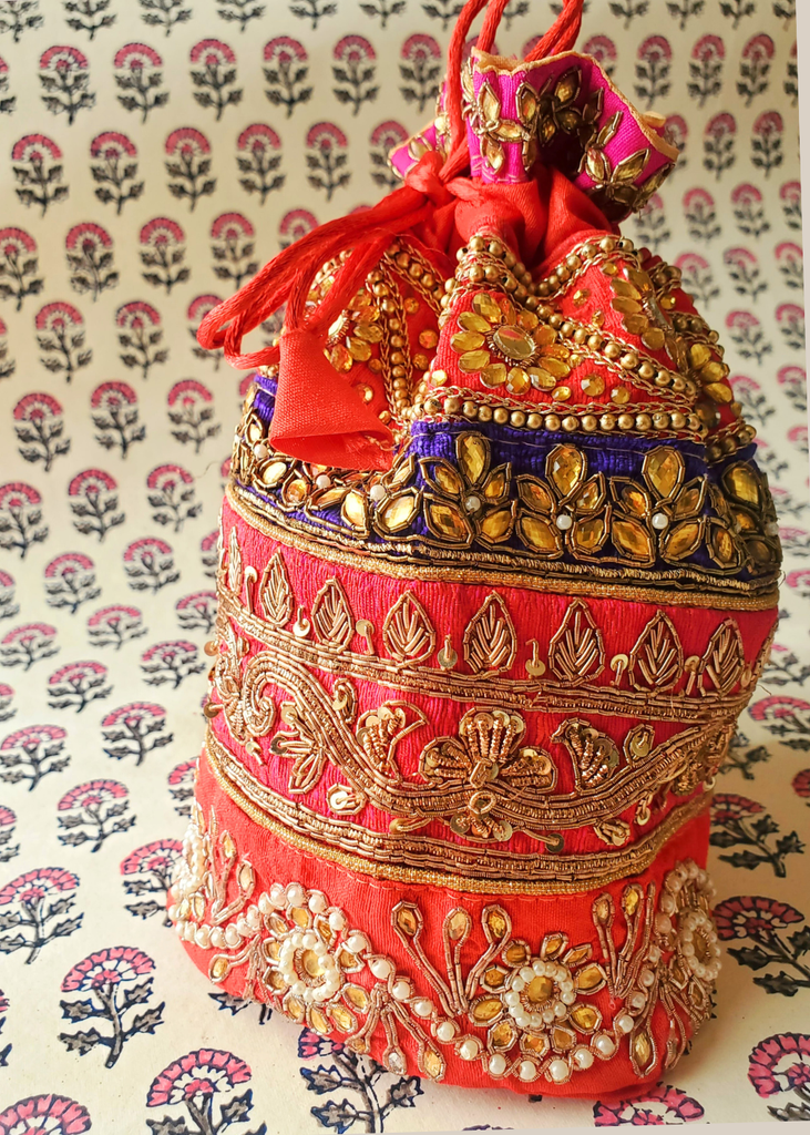 All the exuberance of Jaipur colour, gold and glitter in one little bag!